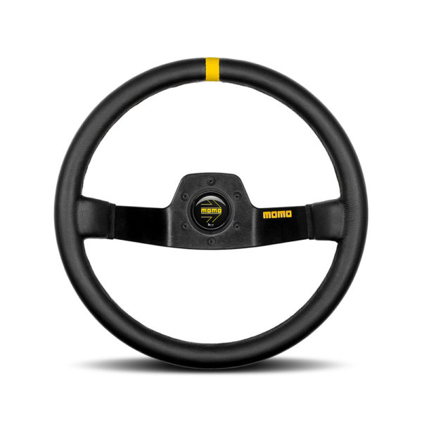 Accueil // Boutique // Divers // Volant Momo Mod. 02 Tulipé (87 mm), Cuir Noir, Branches Noires – 35 cm