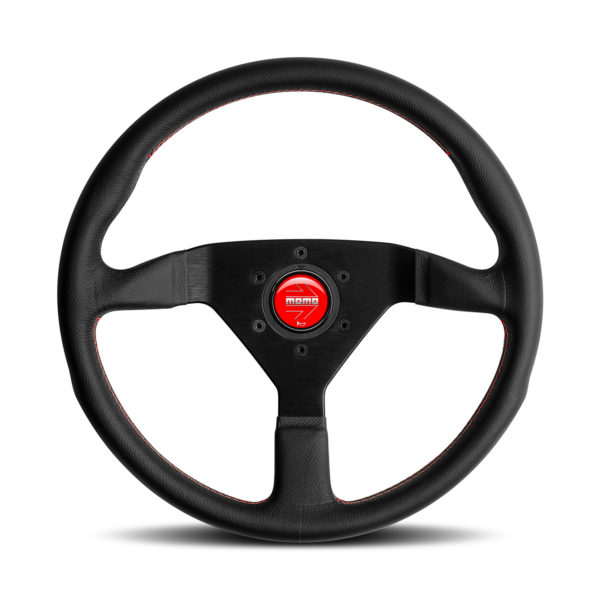 Accueil // Boutique // Divers // Volant Momo Montecarlo Tulipé (40 mm), Cuir Noir, Coutures Rouges – 35 cm