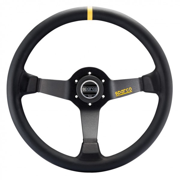 Accueil // Boutique // Auto // Habitacle // Volants // Volant Sparco R345 Tulipé (63 mm), Cuir Noir Retourné, Branches Noires
